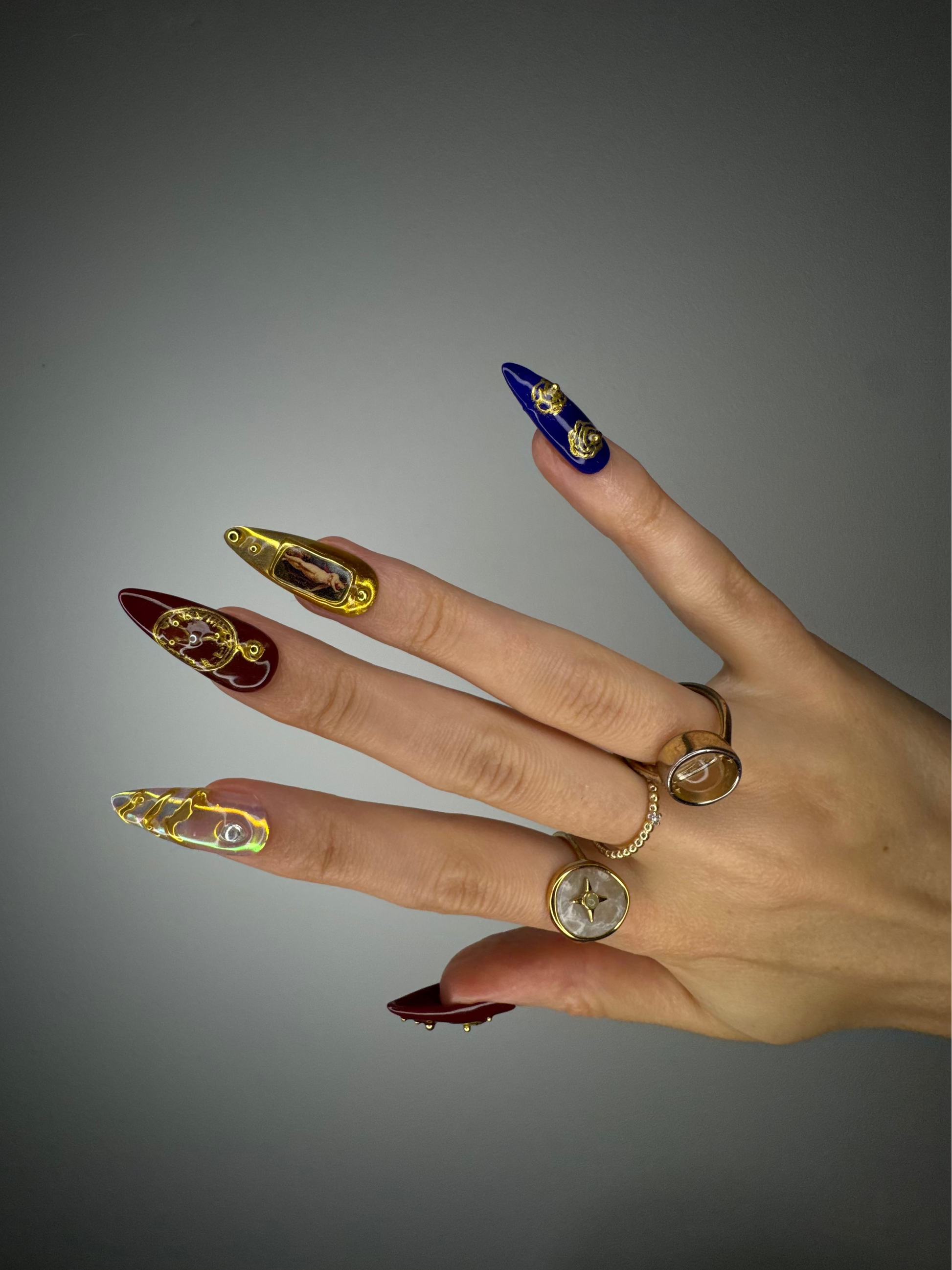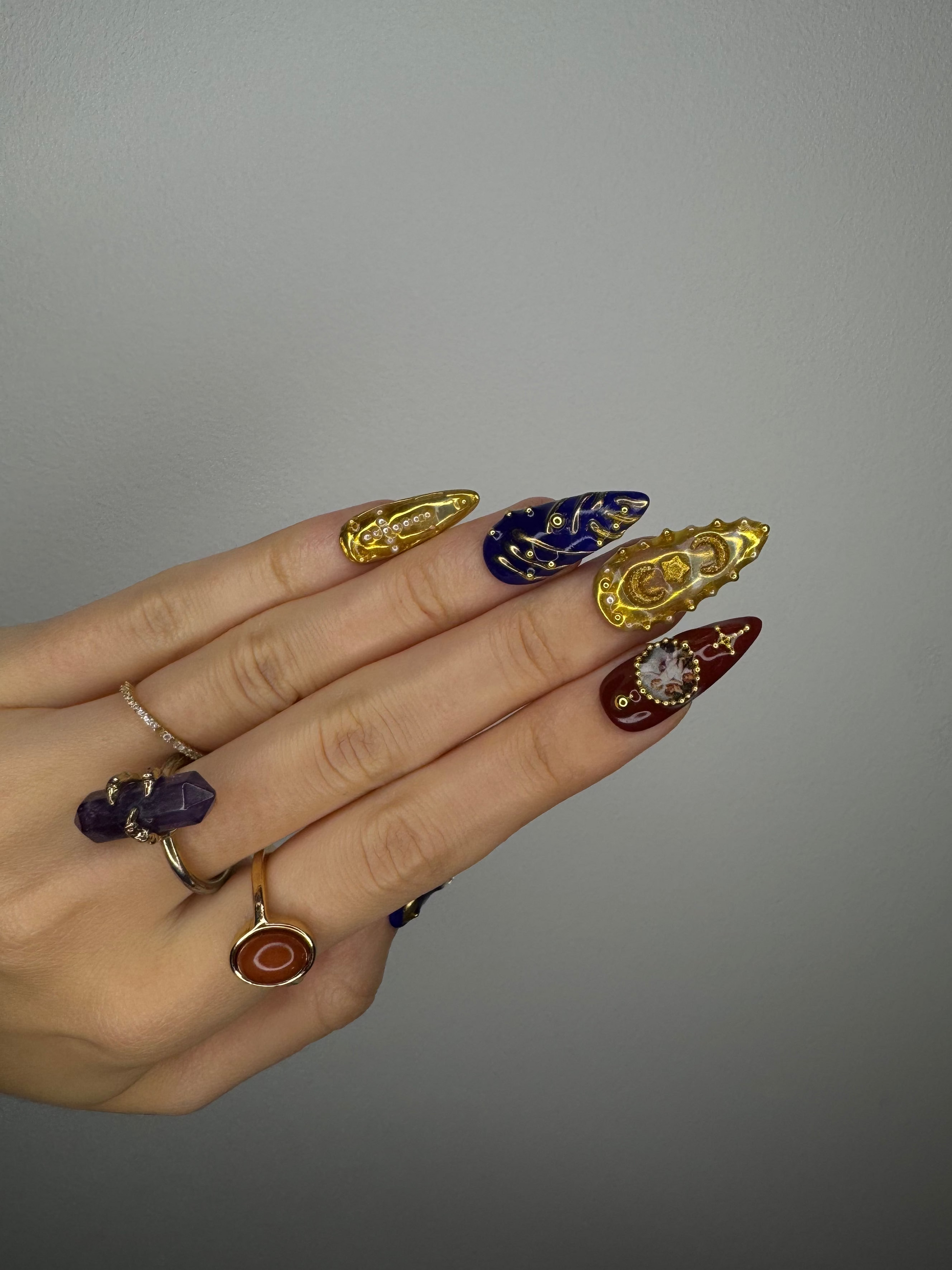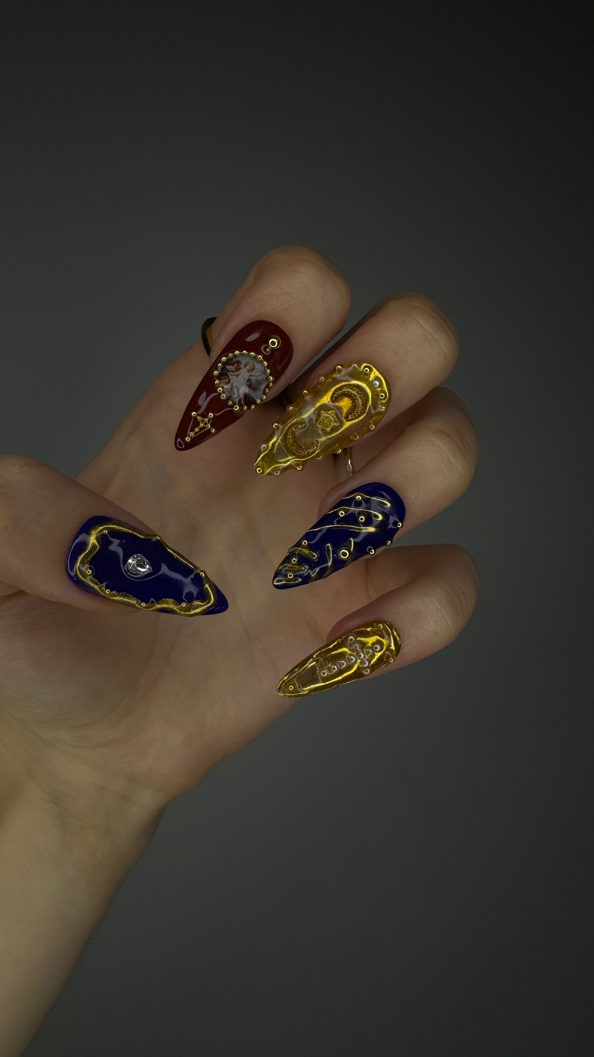 The Spiky Strawberry™ Divine Time Set channels a sense of luxury and mysticism, inspired by celestial art and baroque. Deep blues and rich burgundies meet gold embellishments, creating a timeless, regal look.