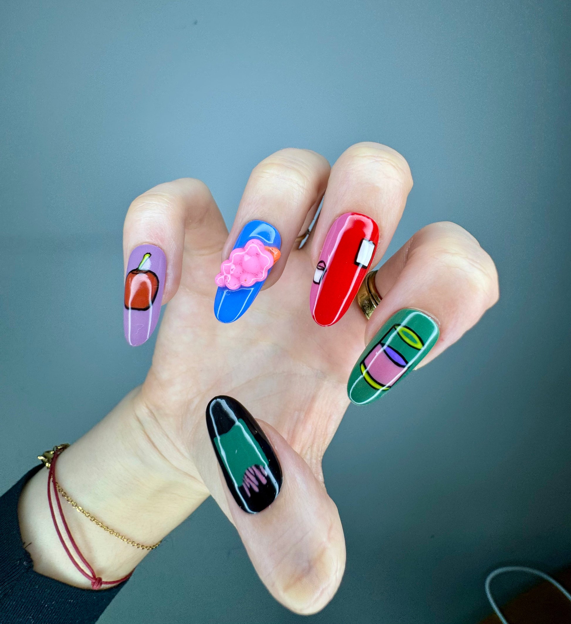 This design features 3D elements like pink grapes and orange cherries, others include objects such as ladder, payment card or apple. Designs reflects on the idea that objects should be recognised by their appearance rather than colour.