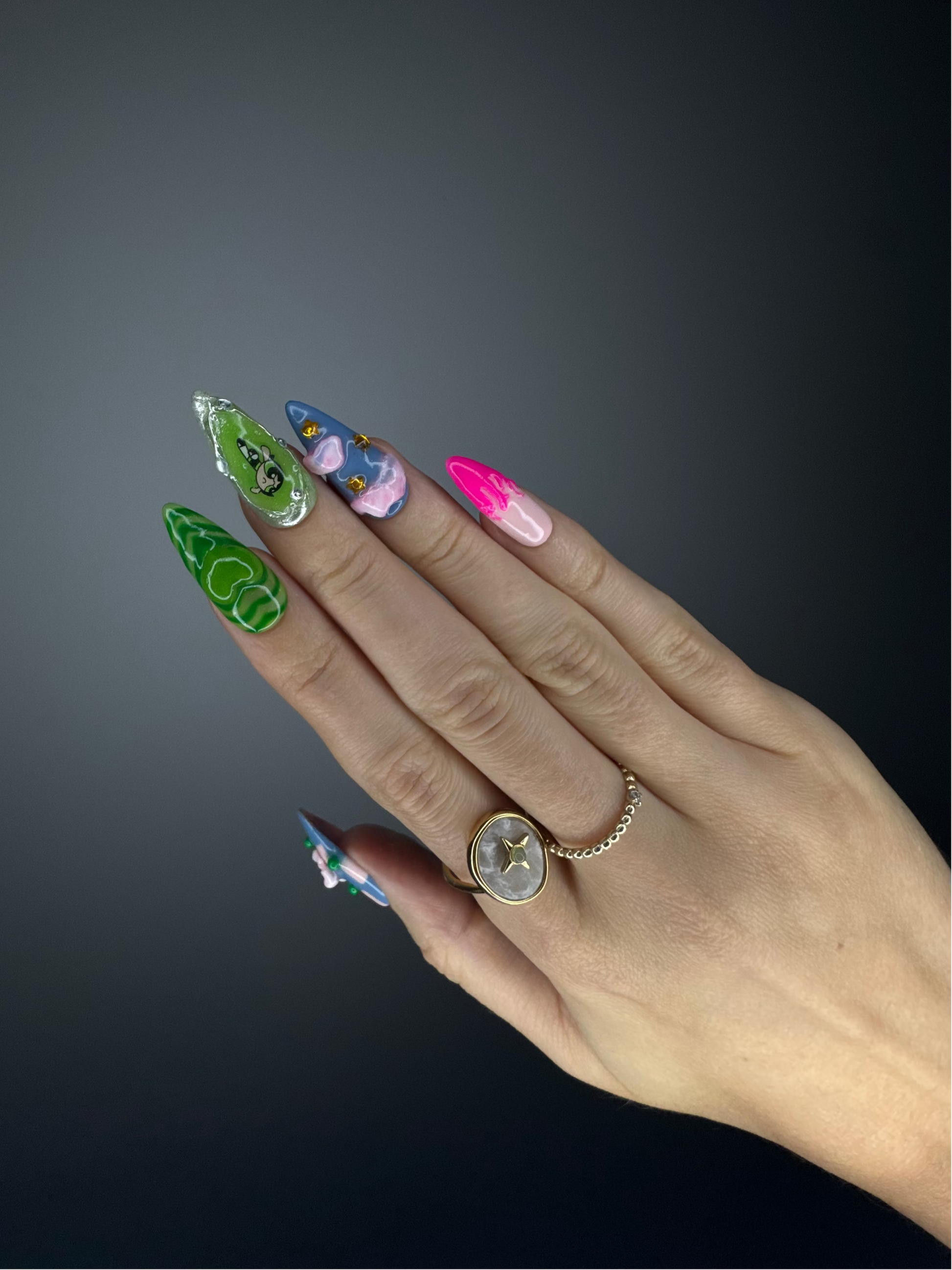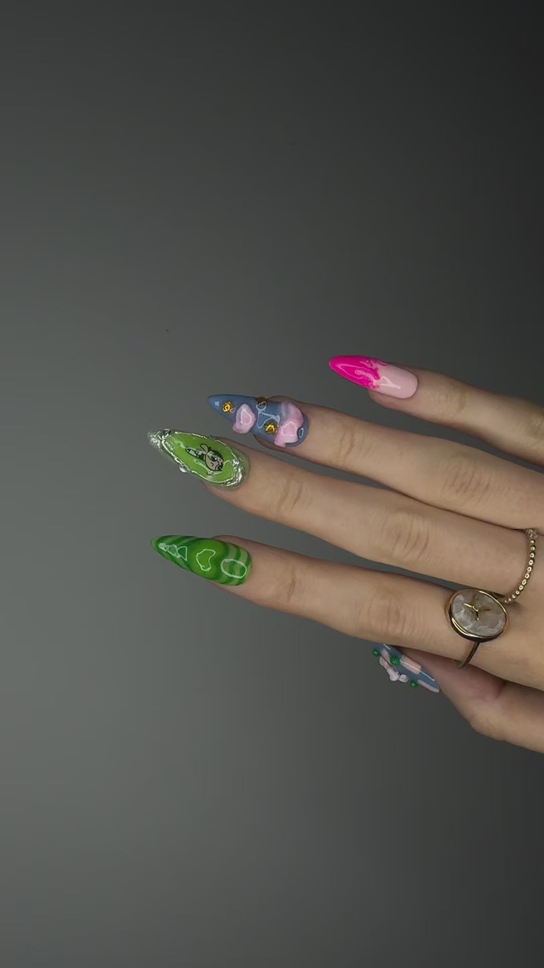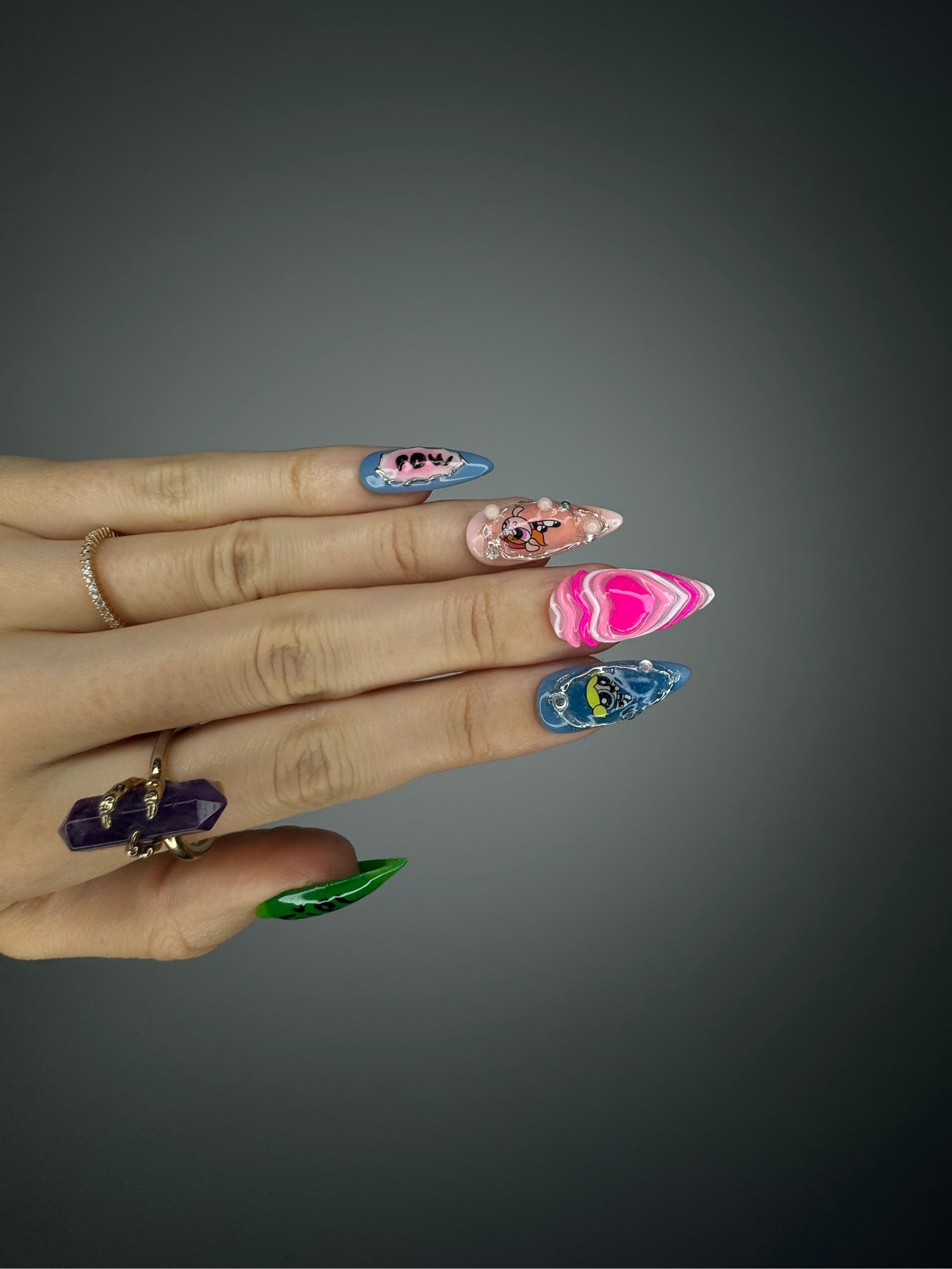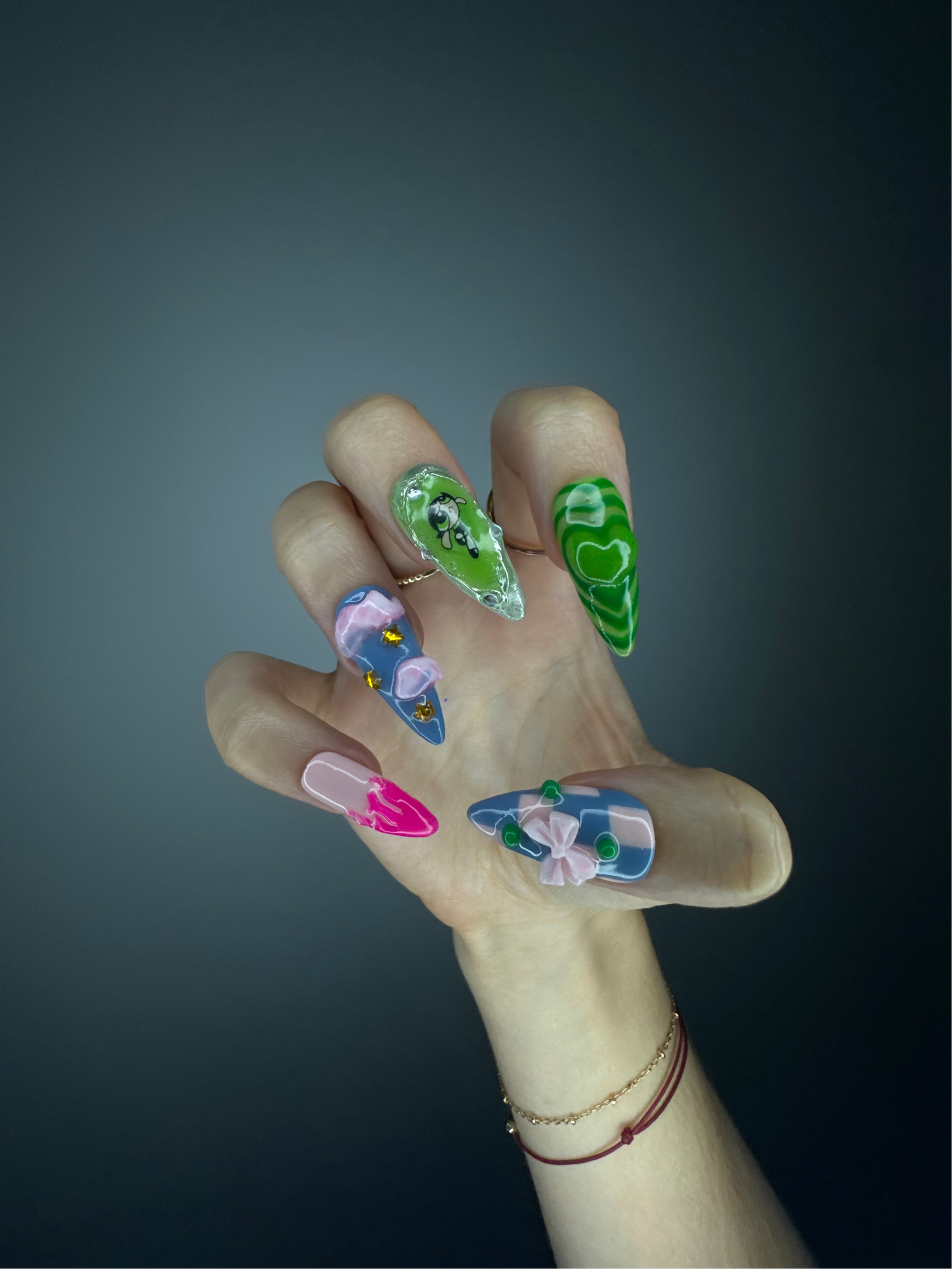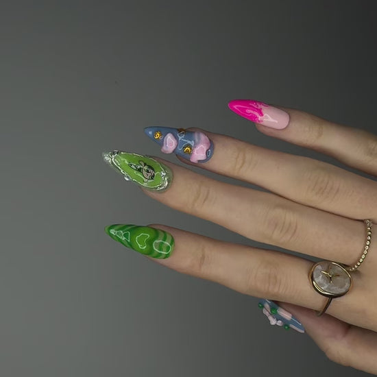 The Spiky Strawberry™ Powerpuff Set takes inspiration from nostalgic 2000s pop culture and the bold, playful energy of the Powerpuff Girls. Combining soft pastels with vibrant greens and pinks, this set celebrates individuality and fun.
